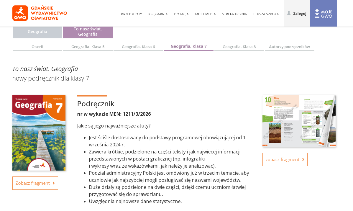 Gdańskie Wydawnictwo Oświatowe jest twórcą uznanej serii „Matematyka z Plusem”. Od roku szkolnego 2024/2025 wprowadziło swoją ofertę podręczników do geografii dla szkół podstawowych. Pierwszym z nich był podręcznik z zeszytem ćwiczeń do klasy piątej, w roku ubiegłym pojawiła się kontynuacja do klasy szóstej. Obecnie do szkoły wchodzi trzecia część serii do klasy siódmej wraz z przygotowanym multipodrecznikiem. Wkrótce do tego pakietu dołączy także zeszyt ćwiczeń (obecnie w przygotowaniu), a w przyszłym roku cykl zakończy podręcznik do klasy ósmej.