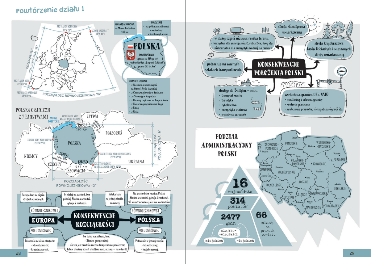 W podręczniku nie brakuje map, w tym także dodatkowych na podsumowanie całego roku szkolnego