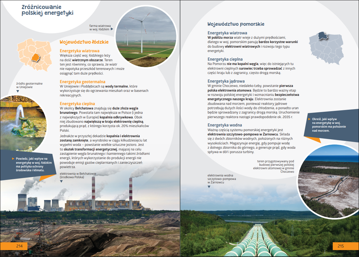 Rozwój energetyki w Polsce, w tym na przykładzie województw: łódzkiego i pomorskiego zamiast umiejscowienia w odrębnym dziale to temat w obrębie „Gospodarki Polski”