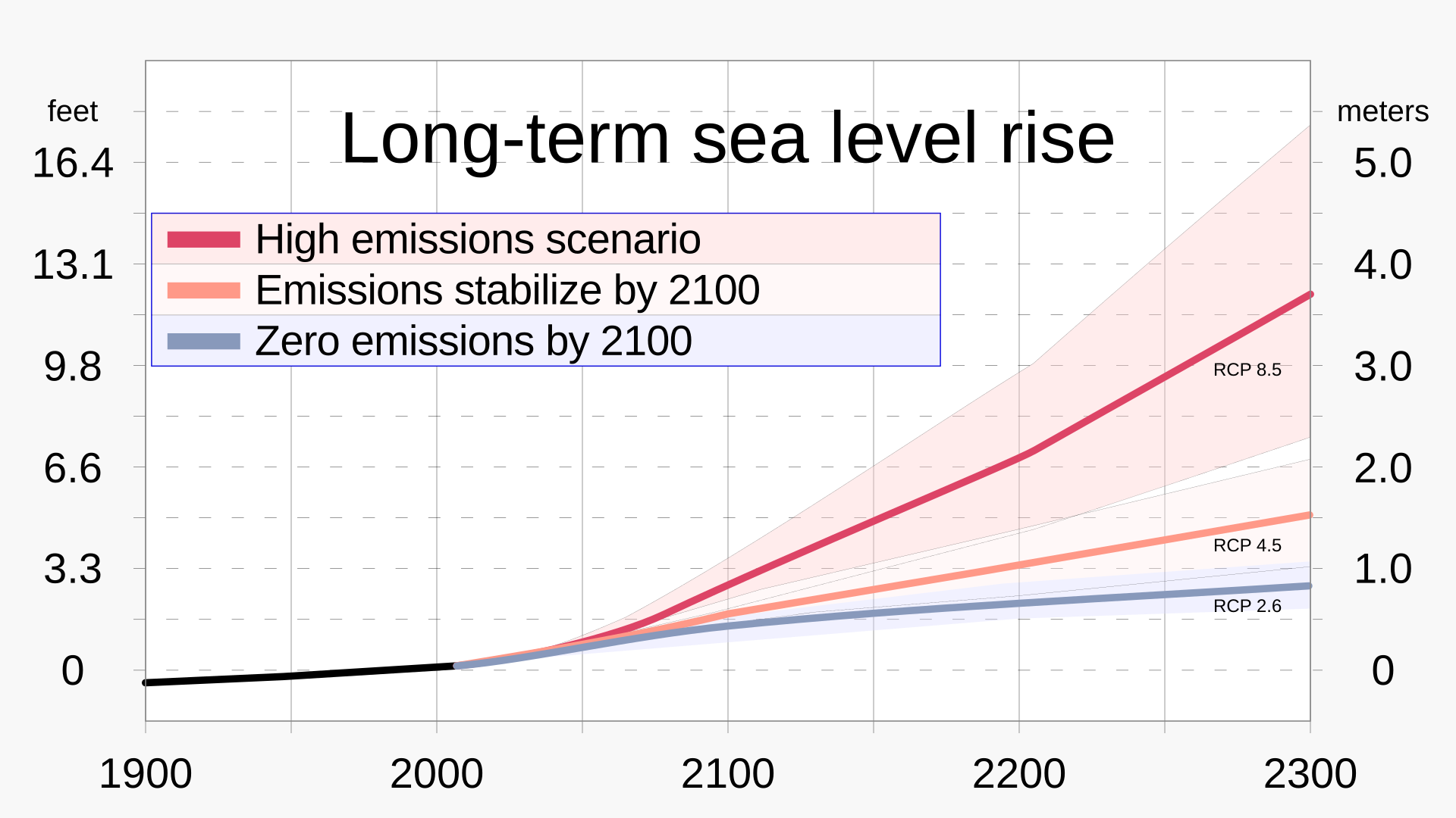 Źródło: RCraig09; https://upload.wikimedia.org/wikipedia/commons/thumb/2/2c/1900-2300_Long-term_projections_of_sea_level_rise.svg/1920px-1900-2300_Long-term_projections_of_sea_level_rise.svg.png