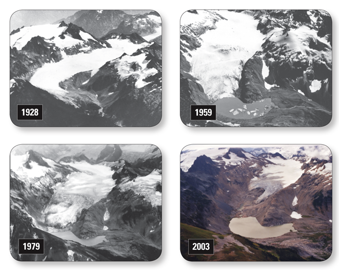 Zanik lodowców górskich na Świecie jest powszechnie obserwowany na całej planecie – tutaj Lodowiec South Cascade w Kordylierach w Stanie Waszyngton (północno-zachodnie USA przy granicy z Kanadą)